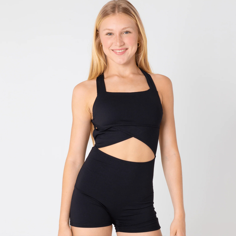 Say Hello to the newest addition to our Unitard family, The Shannon Unitard is a stunning and sophisticated design, with a dynamic cut-out front and a luxurious criss-cross back in timeless black. Embrace the artistry and elegance of this exclusive piece.